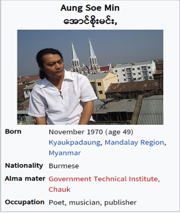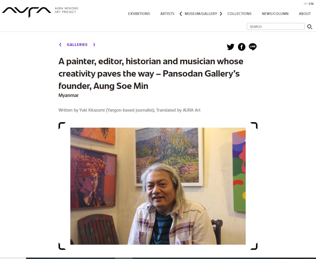 Media Wikipedia https://en.wikipedia.org/wiki/Aung_Soe_Min BBC NEWS TEDx Talks Hidden Memories: A Glimpse of History through Old Publications | Aung Soe Min | TEDxInyaLake Futurecities.nl Aung Soe Min’s Painting The Irrawaddy The Irrawaddy Myanmar Times MYANMORE MIRADIO AURA MEKONG ART PROJECT Pansoadan Gallery Pansodan Gallery House of Tea in Yangon Share this: Click to share on X (Opens in new window) X Click to share on Facebook (Opens in new window) Facebook Like Loading...